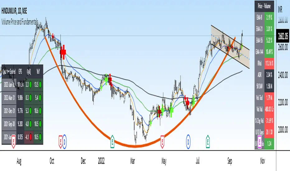 It also contain a table for volume and 50 Day Avg. Volume, Relative volume, Change in Volume, Volume Value, Up-Down Closing Basis days in last 50 days, Volume ratio (U/D Ratio) on last 50-day Up / Down days and along with fundamental analysis table with various Fundamental Analysis parameters and QoQ & YoY comparison basis for better investment decision making.