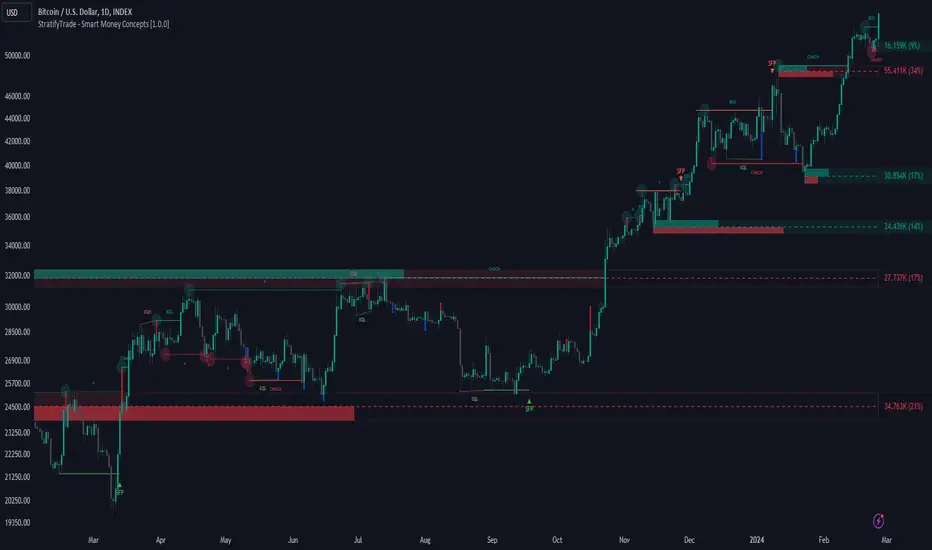 Sweeps (x): These signify potential turning points in the market where liquidity is removed from the structure. This suggests a possible trend reversal and presents crucial entry opportunities. Sweeps are identified within both swing and internal structures, providing valuable insights for informed trading decisions.