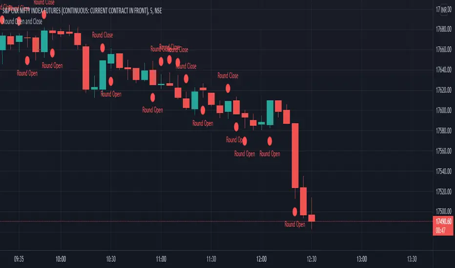 Highlights the candles having round numbers or having decimals 0.1 as opening or closing
