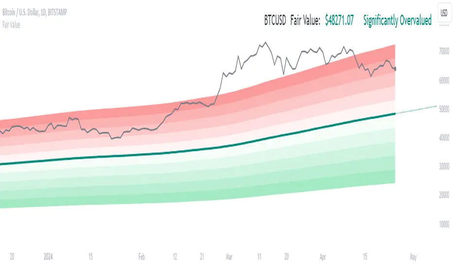 This indicator is designed to provide a valuation perspective based on a specified length and deviations from a base value. This code calculates fair value levels relative to a chosen source (typically closing prices) using simple moving averages (SMA) or exponential moving averages (EMA). Please note that this is purely educational and should not be considered financial advice.