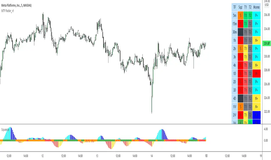 MTF Radar is like your car dashboard for trading. It is your X-ray machine and, in one glance, you know what price is doing in all major time frames, from 5m to 1Q, without having to flip through multiple charts. Simple and visual!