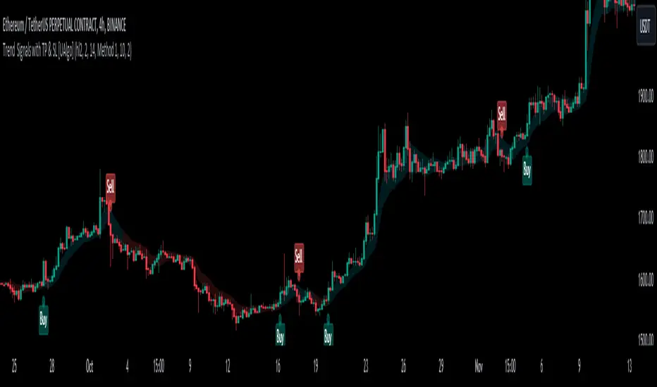 The "Trend Signals with TP & SL [UAlgo]" indicator is a versatile tool designed to assist traders in identifying potential trend continuation opportunities within financial markets Utilizing a combination of technical indicators and user-defined parameters, this indicator aims to provide clear and actionable signals to aid traders in making informed trading decisions.