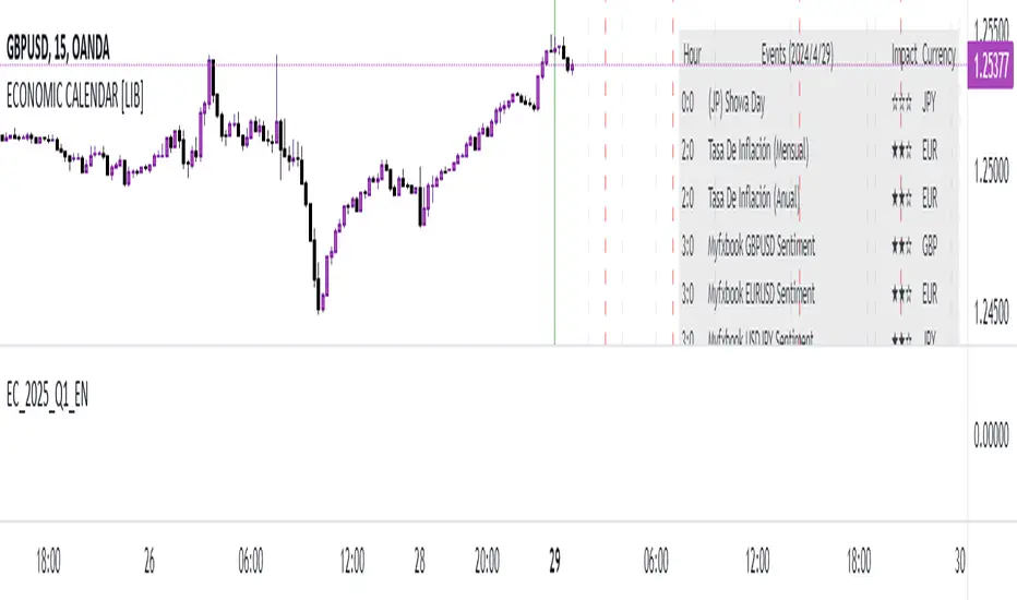 Dalam semangat sebenar TradingView, penulis telah menerbitkan kod Pine ini sebagai perpustakaan sumber terbuka supaya pengaturcara Pine lain dari komuniti kami boleh menggunakannya semula. Sorakan kepada penulis! Anda juga boleh menggunakan perpustakaan ini secara peribadi atau dalam penerbitan sumber terbuka lain, tetapi penggunaan semula kod ini dalam penerbitan adalah tertakluk kepada Peraturan Dalaman.