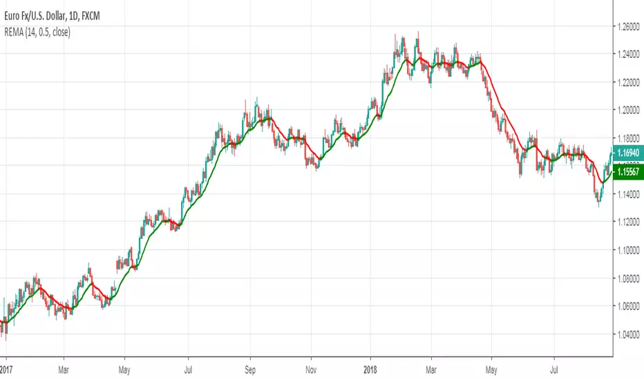Regularized Exponential Moving Average indicator script based on the original version by Chris Satchwell