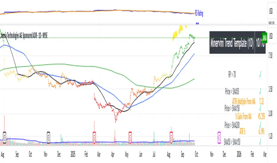 This script brings Mark Minervini’s famous Trend Template directly onto your TradingView charts — combining candle coloring, moving averages, trend checks, and a live criteria table into one tool.