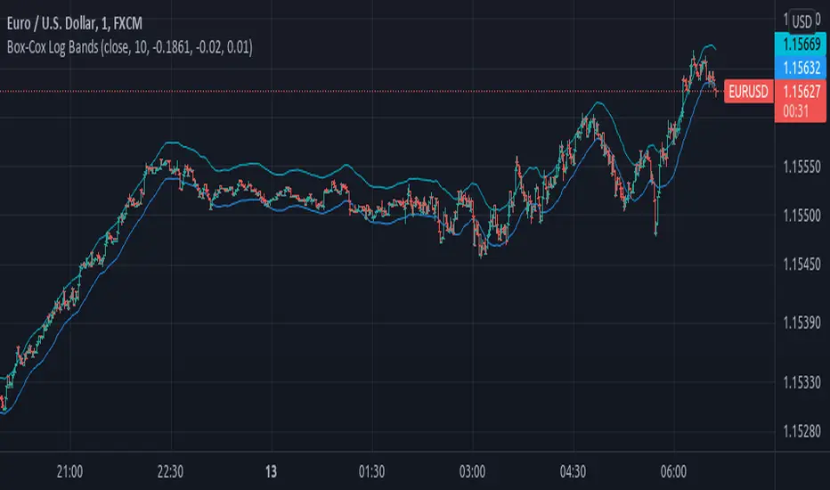 Uses the Box-Cox Transformer with a deflection on the inversion to create log bands.