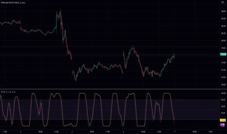 The features in this scripts are: RSI Length, Extra Smoothing, Extra Smooth RSI Filter, Stochastic Length, and K and D.