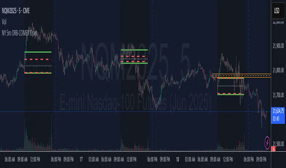 This indicator is designed to display dynamic and static key market levels, including Opening Range Breakout (ORB) levels, Initial Daily Range (IDR), and other important session levels. It offers extensive customization to accommodate a variety of trading strategies and sessions, all while providing an adaptable user interface for traders to personalize their charts.