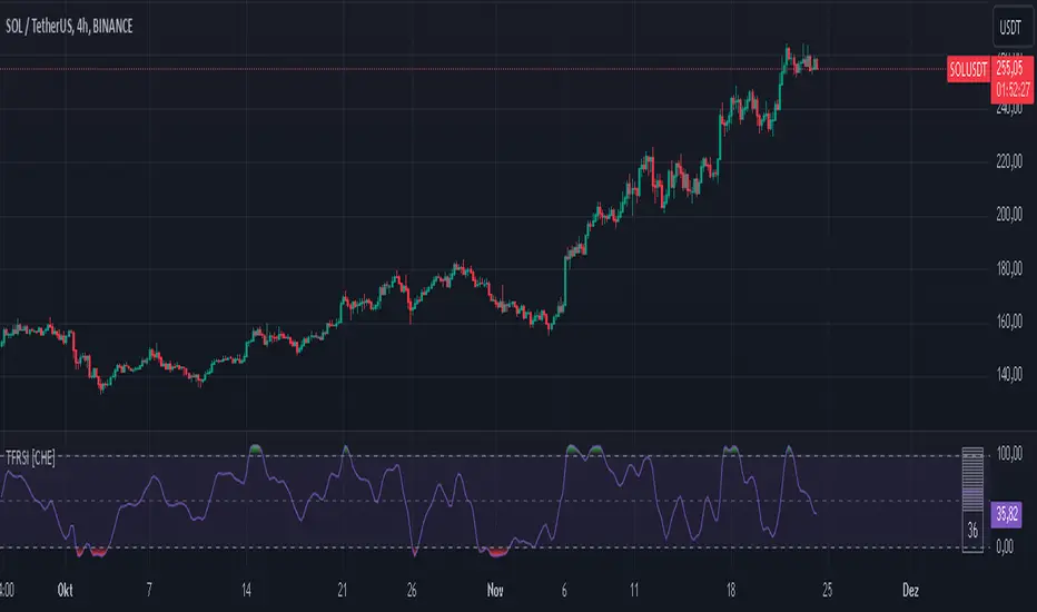 The TFRSI is calculated based on the close price and is typically plotted on a scale from -20 to 120, with values above 100 indicating that