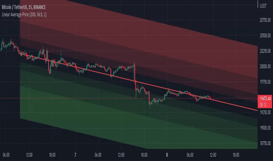 It can be used both to have an idea about the trend direction and to determine buy-sell zones. You can choose how many candles the indicator will calculate from the "lenght" section. The "range" part is the coefficient of the standard deviation and can be used to expand or collapse zones.