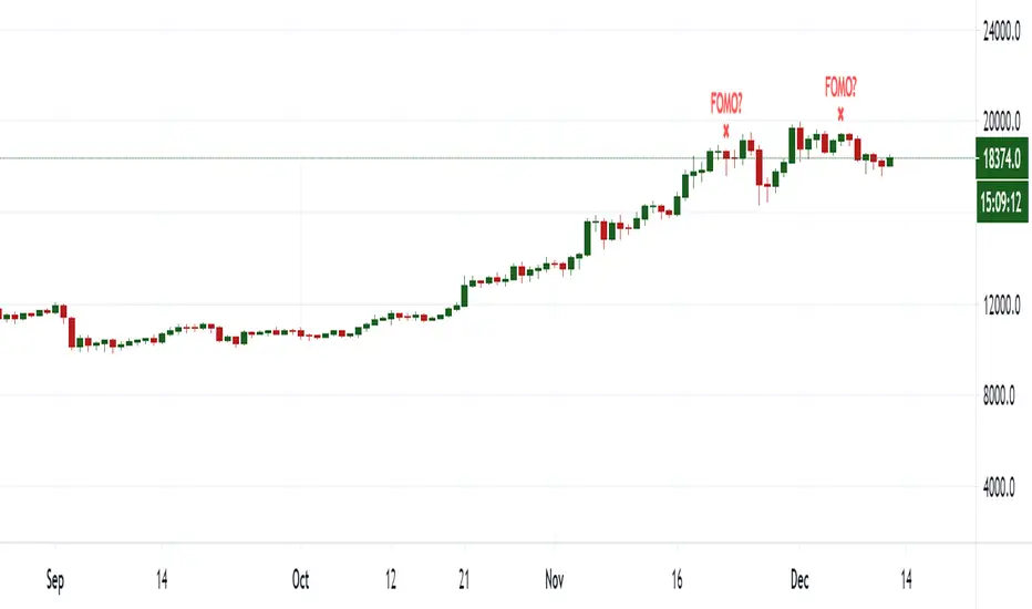 When Weekly RSI, using Coinbase Data, gets over 84 , then it generates a marker on the chart saying FOMO