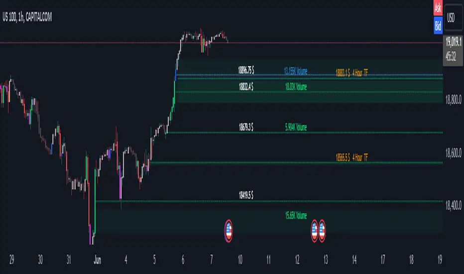 Custom PVSRA Zones: You can plot custom PVSRA zones from higher timeframes onto the current chart, enabling the analysis of key levels and trends from multiple timeframes for a broader market perspective.