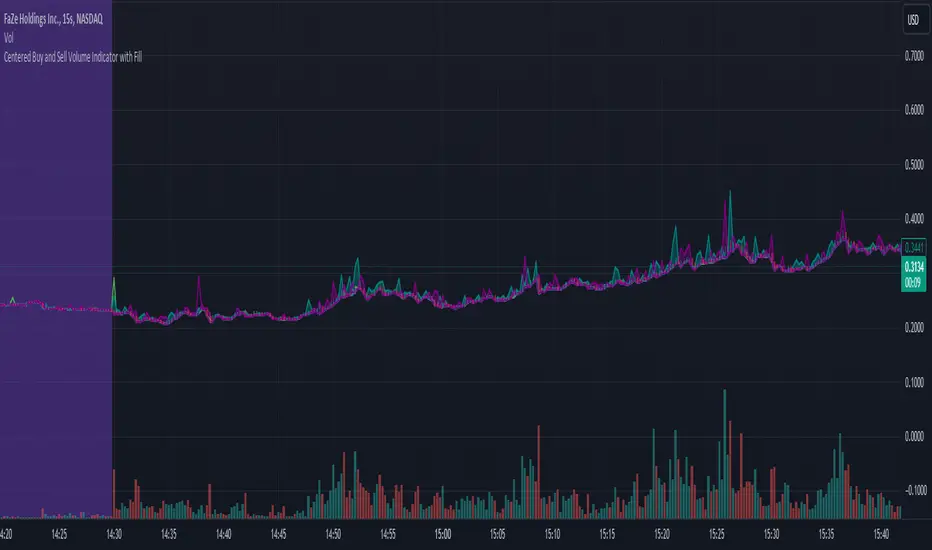 This indicator provides an estimation of buy and sell volumes in the market. The estimated buy volume is represented by a blue-green color, while the estimated sell volume is depicted in purple. Both of these are highlighted with a solid fill. Additionally, the Rate of Change for the buy volume is shown in a solid green line, and for the sell volume, it's illustrated with a solid purple line, both without any fill.