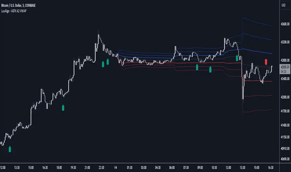 The ASFX A2 VWAP is a toolkit based on A2 signals and daily anchored VWAP bands, a methodology proposed by trader & educator Austin Silver (ASFX).