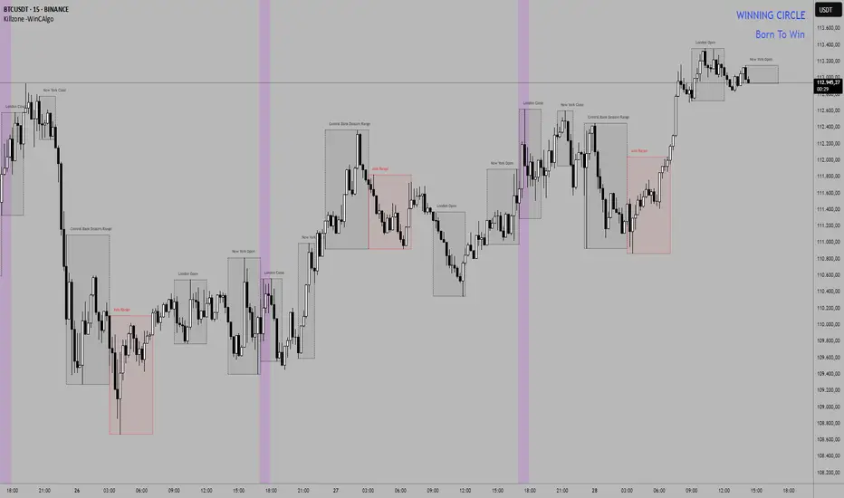 The Killzone Trading Sessions Indicator is a comprehensive tool designed to identify and visualize the most important trading sessions across all financial markets. This indicator highlights key timeframes when institutional traders and market makers are most active, creating high-probability trading opportunities in stocks, crypto, commodities, and indices.