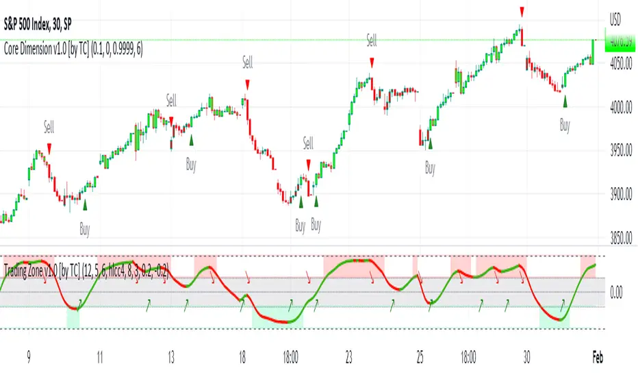 Additional functionality: To assist traders in making informed decisions, Core Dimension also features a confirmation filter. The Adaptive Trendline provides traders with a good visual overview of when to enter or exit a trade, and can be used in combination with other indicators to determine when to take profit and execute stop-loss.