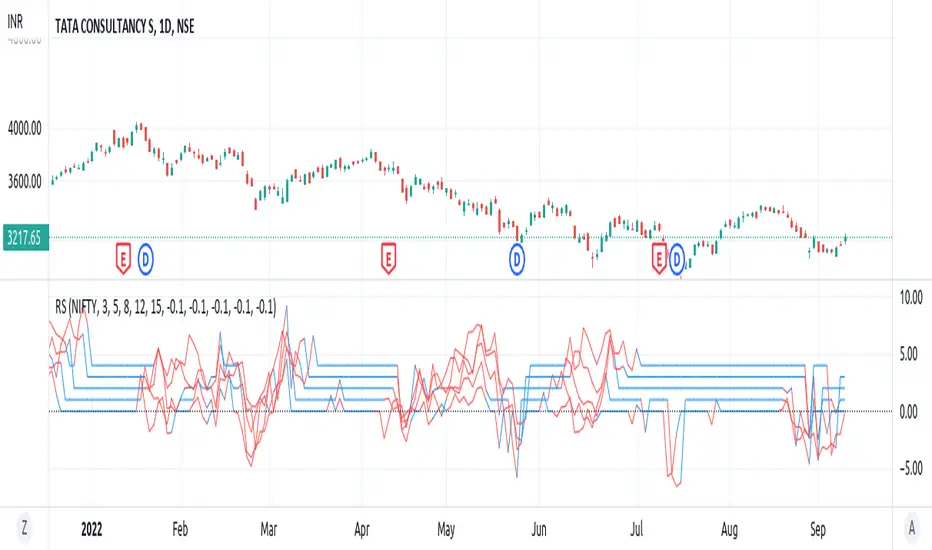 This script shows relative strength of custom stock compared to Index. It is helpful in detecting how strongly a stock is performing when compared to an Index.