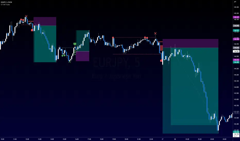 Indicator looks for ICT & Smart Money trades on any timeframe. These types of trades reveal how the big institutions, banks and hedge funds trade with big money. If they want their very big positions to be filled they need to find areas in chart where the majority of the money is sitting. Where is it? Where is the majority of orders placed? Right below supports or right above resistance, these orders are stoplosses or stop orders. So they need to push the price to these areas, take all the available stoplosses and trigger all the available stop orders in order to fill their positions and then push the price to the opposite side to make profit (and retail to lose).