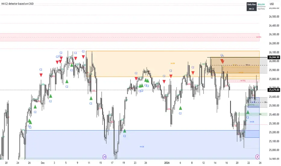 This script is a multi‑stage tool for detecting CISD-based reversals, H4 C2 setups, and related liquidity structures on any chart timeframe.