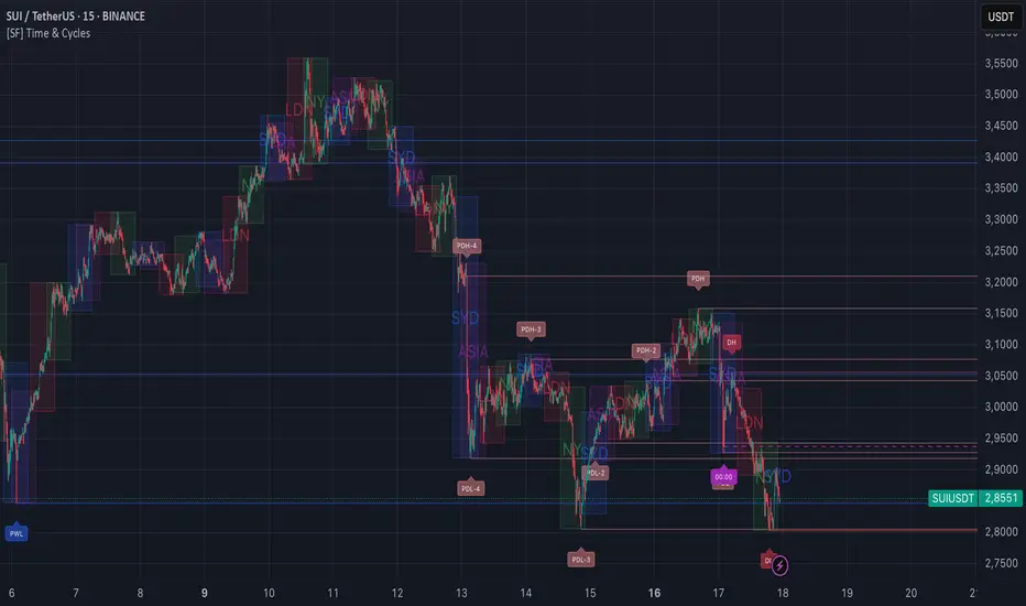 [SF] Time & CyclesA comprehensive trading session indicator that helps traders identify and track key market sessions and their price levels. This tool is particularly useful for forex and futures traders who need to monitor multiple trading sessions.