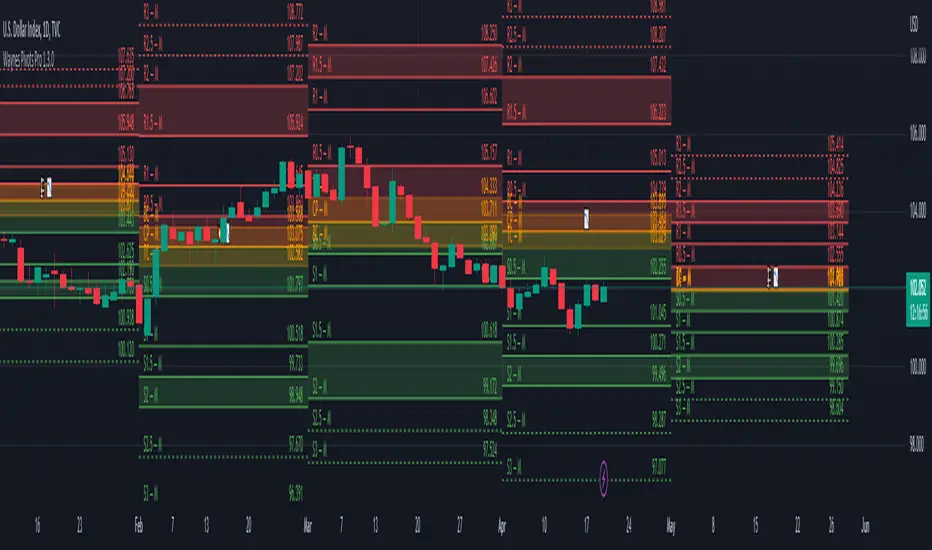 - 🆕 Next Period Pivot Multiplier allows users to arbitrarily set the length and projection of the next period's pivots.