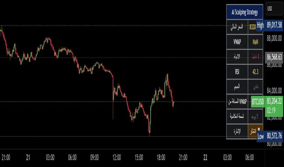 A high-precision intraday scalping strategy that combines VWAP, support/resistance levels, volume confirmation, RSI momentum shifts, and reversal candlestick patterns to identify low-risk, high-accuracy trade entries. The strategy only trades in the direction of the trend relative to VWAP, focuses on high-probability pullback entries, and uses tight stop-losses with small, consistent profit targets. Designed to maximize accuracy and minimize drawdown during high-liquidity market sessions.