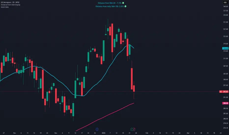This indicator shows the percentage distance of the price from a selected SMA (e.g., SMA 20) and uses a red or green emoji to indicate whether the price is above or below that SMA. This makes it easier to spot stocks that are far below the SMA for potential long setups, or far above it for potential short setups. In other words, it provides a quick visual way to identify overextended or underextended price conditions relative to the chosen moving average.