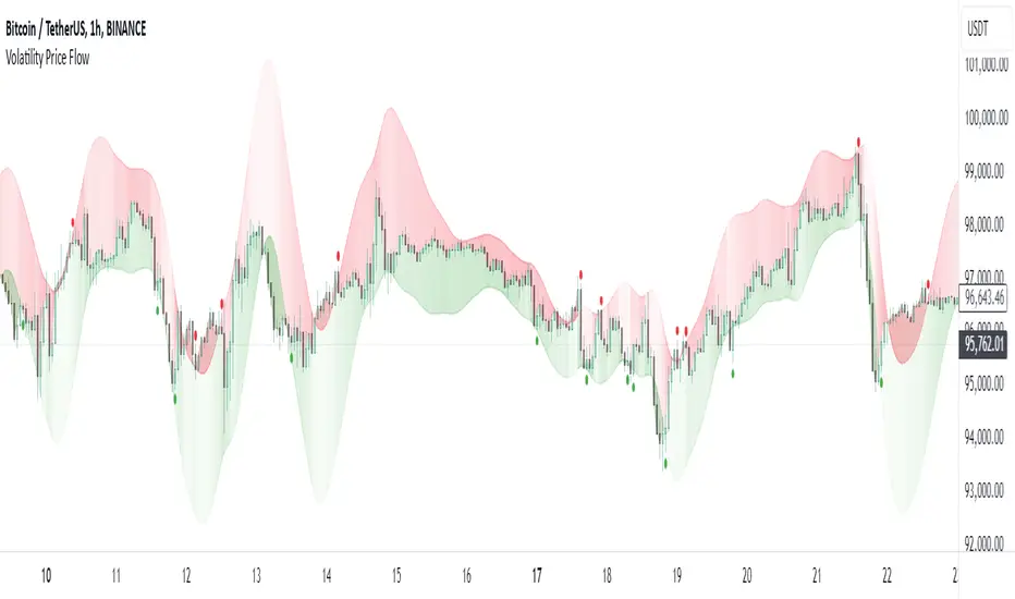 Capitalize on market volatility with our new volatility price flow indicator. We have designed this indicator to process historical price movements and indicate when price may have reached exhaustion in the context of current volatility.