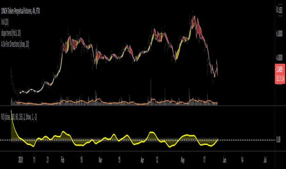 In the same family as the slope trend indicator, but with this one being based on the function x - sinx , which mimics prices moving down and up. Using this we use ROC to determine a lower and upper level which will indicate whether not the path is still being followed.