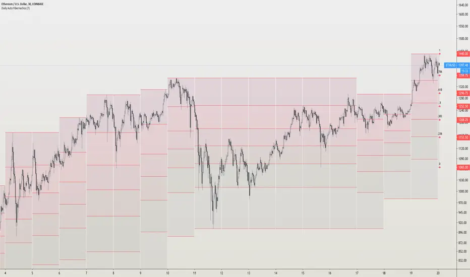 Calculates Fibonacci retracements based on daily highs/lows, and further beyond that if specified. The main difference between this and other auto Fibbing tools is ease of visibility.