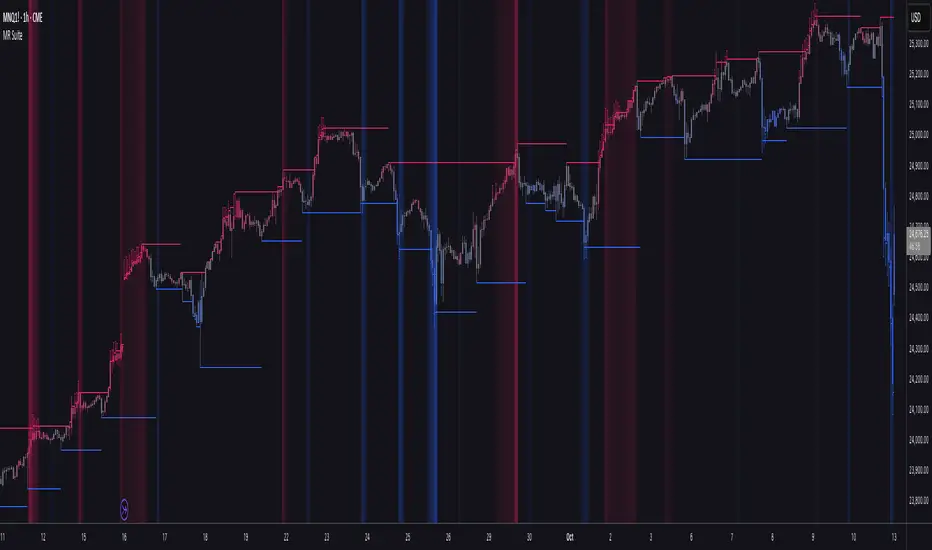 MR Suite is intended for analytical and educational purposes. It does not provide trading signals, risk parameters, or strategy instructions. Users may employ its context alongside their own methodologies, risk frameworks, and execution rules. The indicator’s value derives from quantifying how unusual a move is, showing how much liquidity supports it, and anchoring that information to evolving structural references, thereby improving the clarity and consistency of discretionary assessment without prescribing actions.
