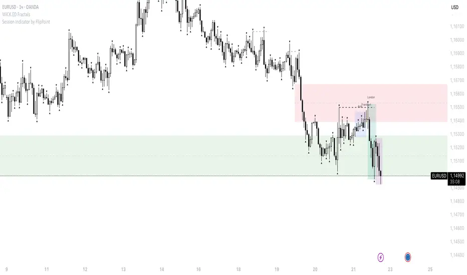 The indicator is designed to display trading sessions on a TradingView chart. It highlights the time ranges of major sessions such as Frankfurt, London, New York, and Asia, providing the ability to analyze price behavior during different periods of the trading day.