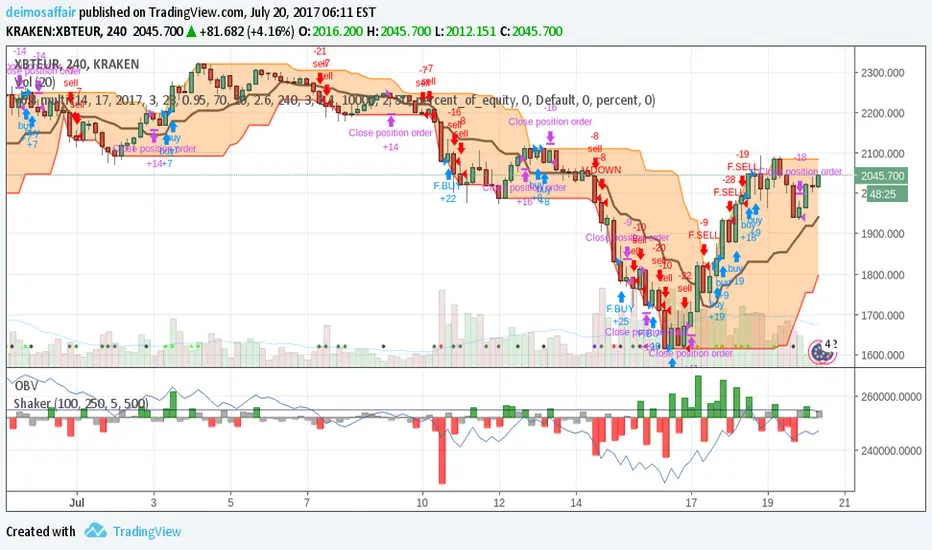 Since all parameters can be adjusted from the inputs, the strat can (and needs) to be fine tuned for the current values of an asset. for example, for gold values, it works good for years. for btc, it breaks for dates with values under 1500$. that's because 1% of 800 is not the same as 1% of 2400$..... Yeah, data fitting, i know all that....