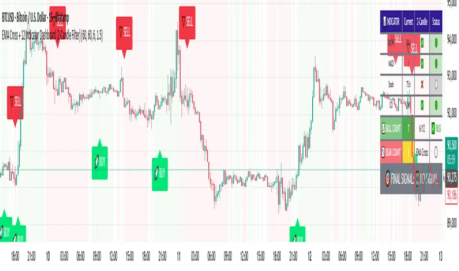 EMA Cross + 12 Indicator Dashboard (Candle Filter)