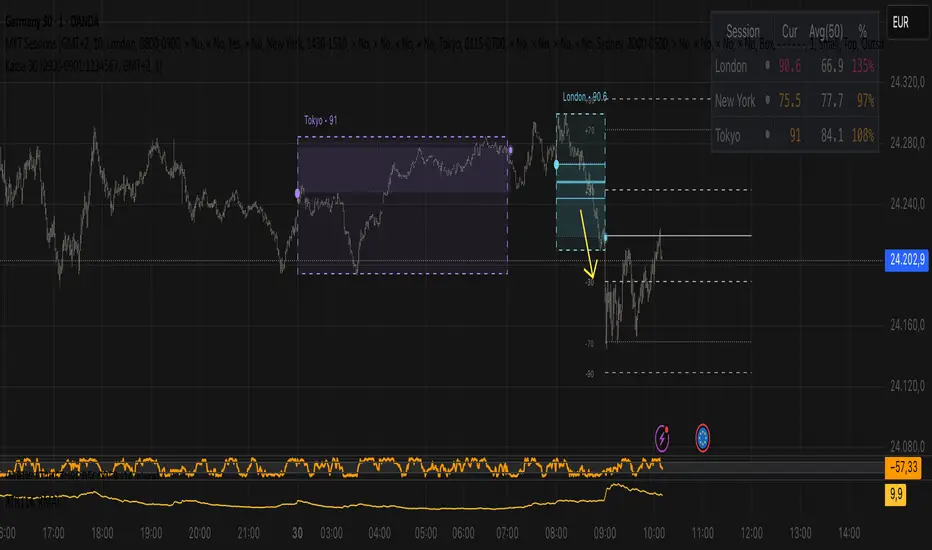 This indicator plots horizontal price levels at ±30, ±70, and ±90 points from the market’s opening price (default 09:00).
