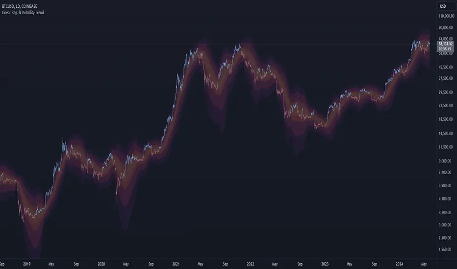 The "Trend Maestro - Linear Regression & Volatility Bands" indicator is meticulously designed to provide traders with a clear understanding of market trends through the application of linear regression techniques and enhanced market data visualization. This tool is essential for traders looking to interpret long-term trends and market stability. Here's how the indicator functions and what makes it a unique addition to your trading toolkit: