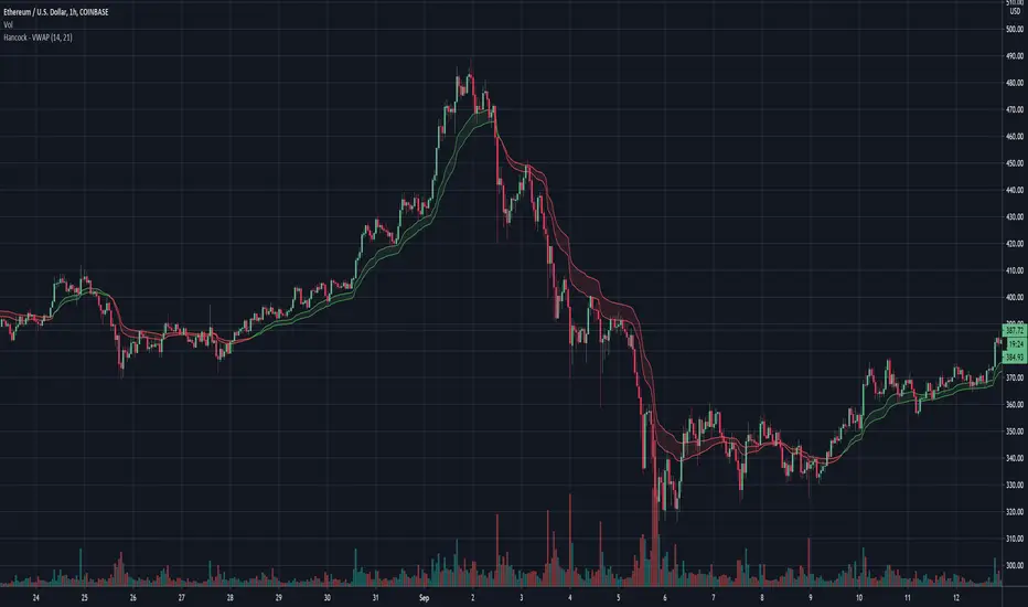Super simple custom VWAP bands of two lengths fast and short. When in a trending market dips into this band looks to be a good time to add to a position. To be used in conjunction with other indicators to avoid ranging markets.