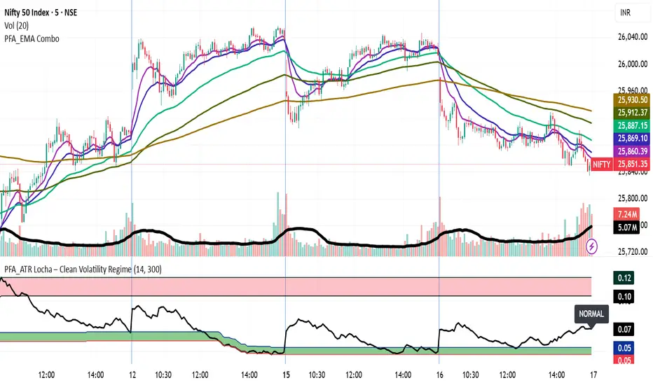 ATR Locha functions as a non-directional volatility-regime discriminator, operationalizing ATR normalized by price to detect latent shifts in market stress dynamics. By stratifying volatility into compression, equilibrium, and expansion states, it isolates pre-trend instability and post-trend exhaustion without invoking directional bias. The indicator is structurally anticipatory rather than predictive, serving as a probabilistic risk-state lens that contextualizes price behavior, enhances temporal positioning, and mitigates regime-mismatch errors when integrated with structural or trend-confirmatory frameworks.
