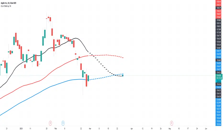3 colors' Dashed lines: The SMA based on the target price
