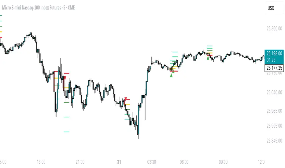 2. Entry criteria - Once we get a long or short confirmation, the entry , sl and 3 take profits will be displayed on the chart.