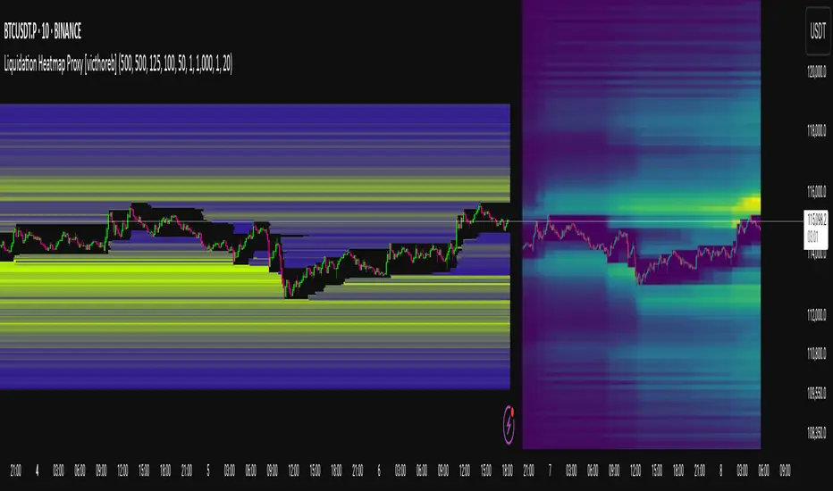 This new version of my 'Liquidation Heatmap Proxy' indicator brings the following NEW feature:**WORKS ON ALL CRYPTOCURRENCY SYMBOLS LISTED ON BINANCE FUTURES**