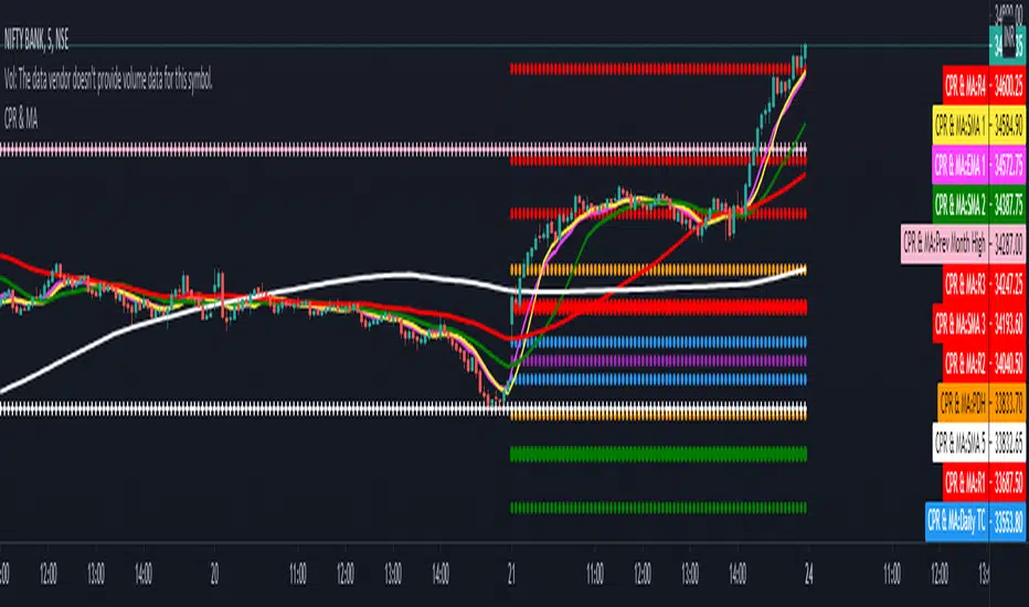 # One of the few indicators (if not the only one) which combines the 2 types of Moving Averages, CPR and also Camarilla Pivots.