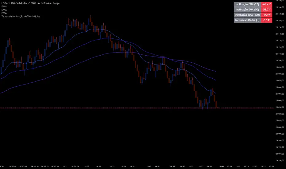 This indicator is designed to calculate and display the slopes and averages of three different moving averages (MAs) in a table format. It helps traders quickly visualize the direction and strength of multiple moving averages, as well as their combined averages, across different timeframes.