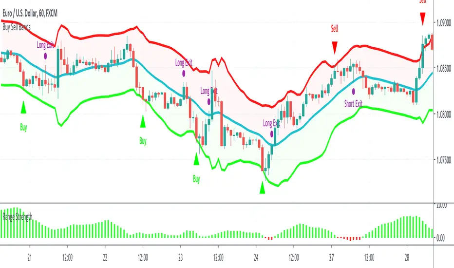 It's best used together with our Buy Sell Bands indicator to identify entry and exit signals within the range, ideally only taking trades when the Range Strength indicator is showing positive (green) readings.