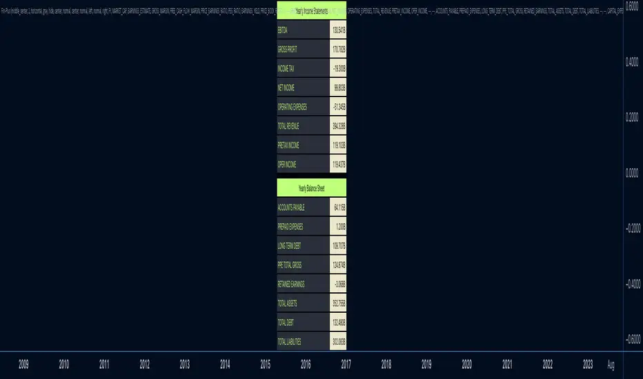 Financial Plus is an indicator designed to provide users with the flexibility to select up to 10 different financial metrics within four key categories: Statistics, Income Statements, Balance Sheets, and Cash Flow. Powered by Pine Script's request.financial() function, this library offers access to over 200 financial metrics.
