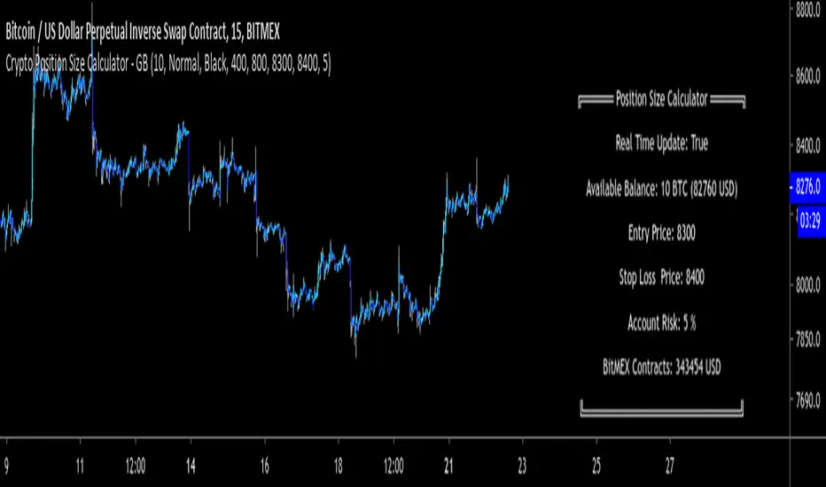 - Check the Real Time Updates box if you want real time updates on the position size and account balance input in BTC. Uncheck the box for manual account balance input in USD.