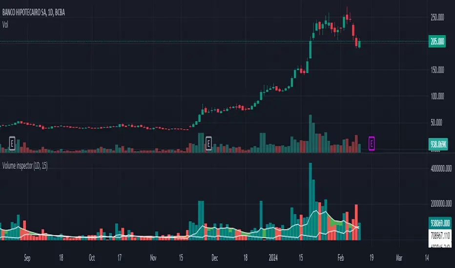 The "Volume inspector" is designed to provide a deep dive into the volume dynamics within a given larger timeframe by dissecting the positive and negative volume of candles from a lower timeframe. This analysis helps in understanding how the volume within a single candle is composed, whether it leans towards buying or selling pressure. The indicator sums up the positive and negative volumes to present the net volume in columns, offering a clear visual representation of the market's buying or selling intensity at a glance.