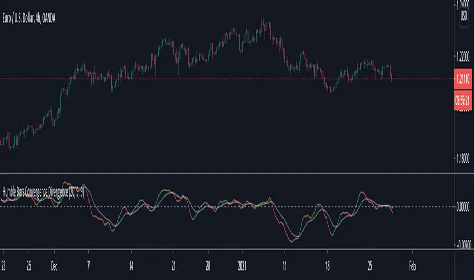 MACDish version of Humble Bars. https://www.tradingview.com/script/I07erWX7-Humble-Bars/ So, basically, HBCD = blue - red