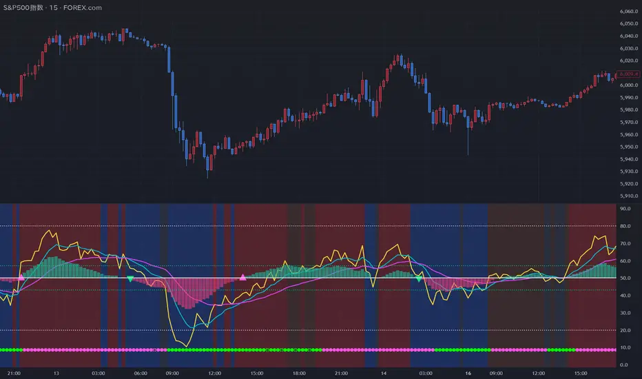 RSI-ma Wave Sensor is a 3-line RSI-based oscillator (Main / Middle / Wave) that shows trend direction, momentum and higher timeframe context in a single pane.