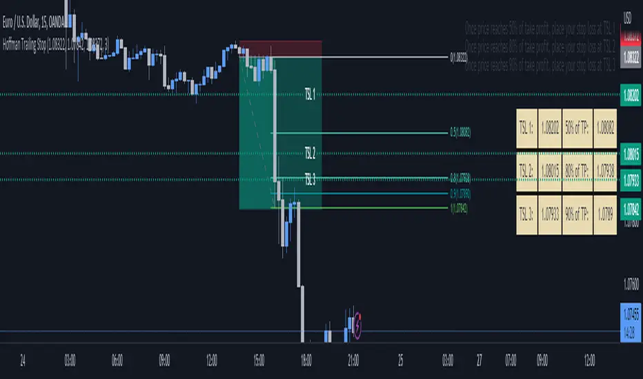 -Added a selection of whether your trade is LONG or SHORT to determine how the script will plot the Trailing SL-Only plots Trailing SL when price is 50/80/90% of its way to the TP mark
